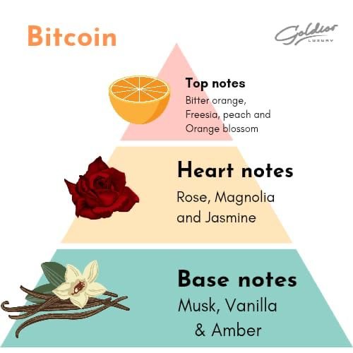 Cardamom, cinnamon, and clean leather give Bitcoin its bold, contemporary feel. It’s sharp, distinctive, and built to turn heads.